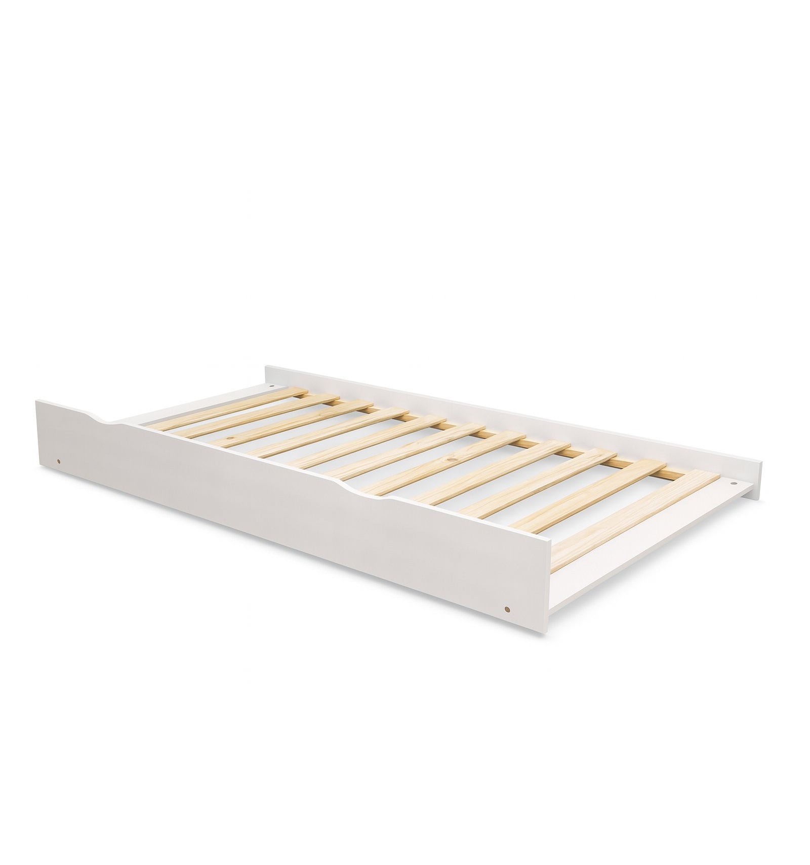 The Trundle Bed RH Vicawu provides a comfortable and functional solution for having an extra bed whenever needed. Its solid pine structure and white finish make it easy to integrate into various bedroom styles.