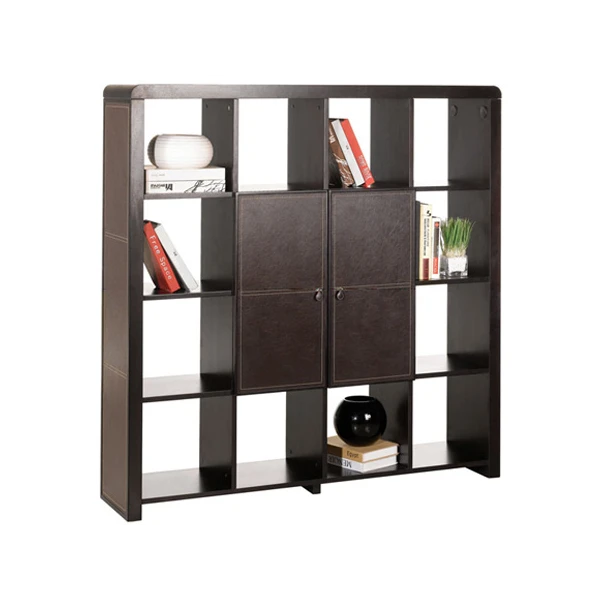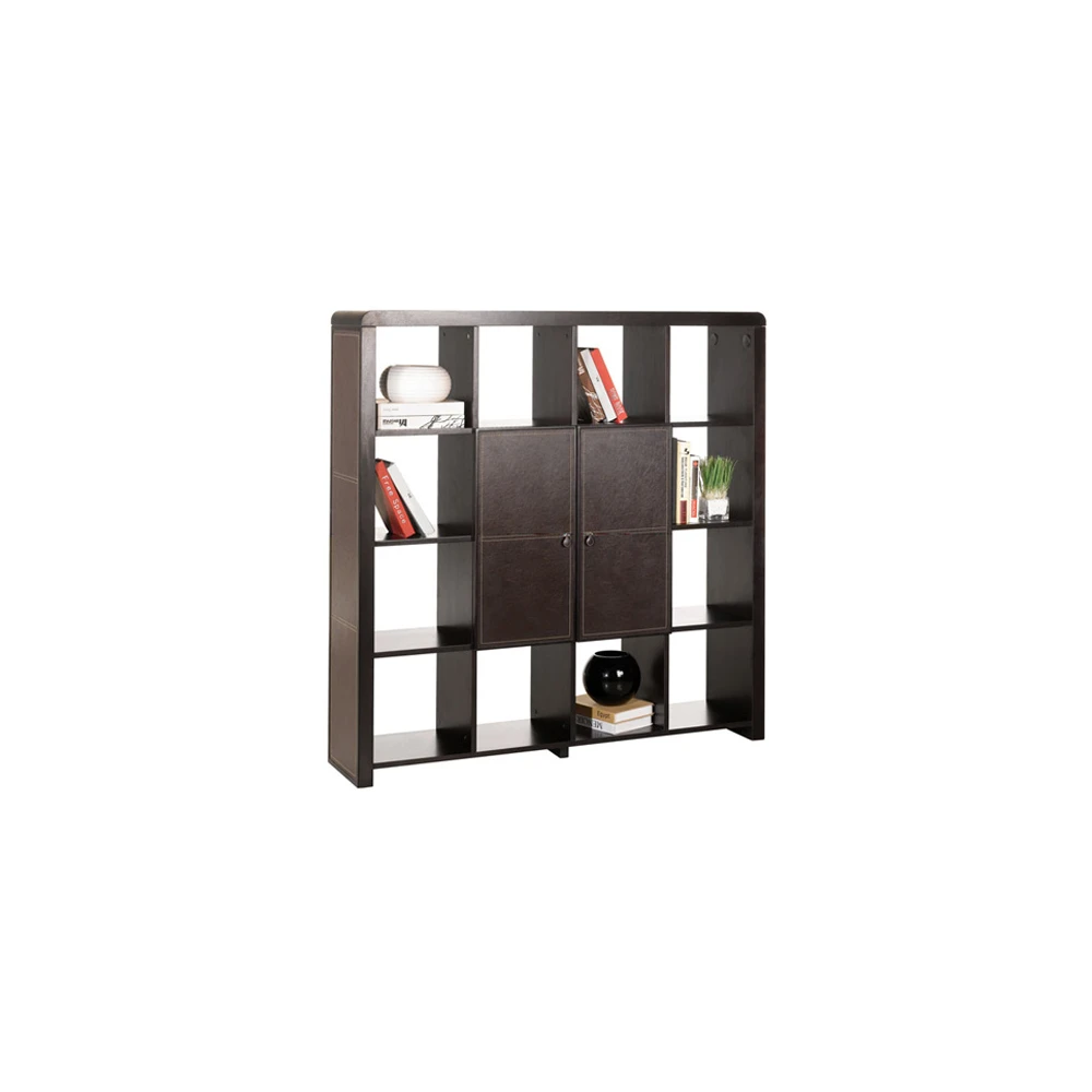 With two practical central doors, made of solid wood and an exclusive reconstituted leather finish in a suggestive chocolate shade, topped with caramel-colored stitching. It has 12 shelves and 2 doors, with 4 additional shelves inside. It matches the table Instinct. Extraordinarily easy to assemble.